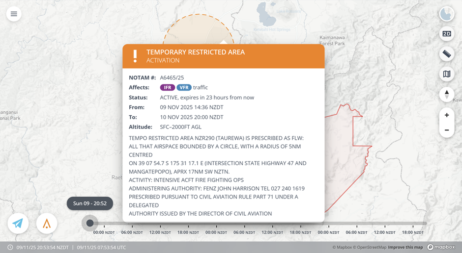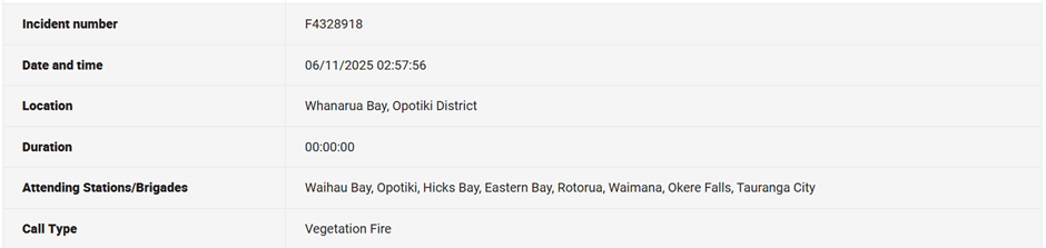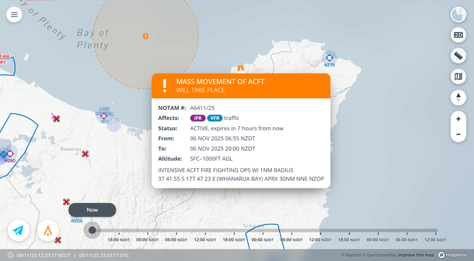 On Thursday 06 November 2025 there was a vegetation fire at Whanarua Bay, Eastern Bay of Plenty. A NOTAM was issued advising intensive aircraft operation. The NOTAM was easily visible on Flight Advisor, but there was no mention of the fire or a NOTAM when dropping a pin on Airshare.