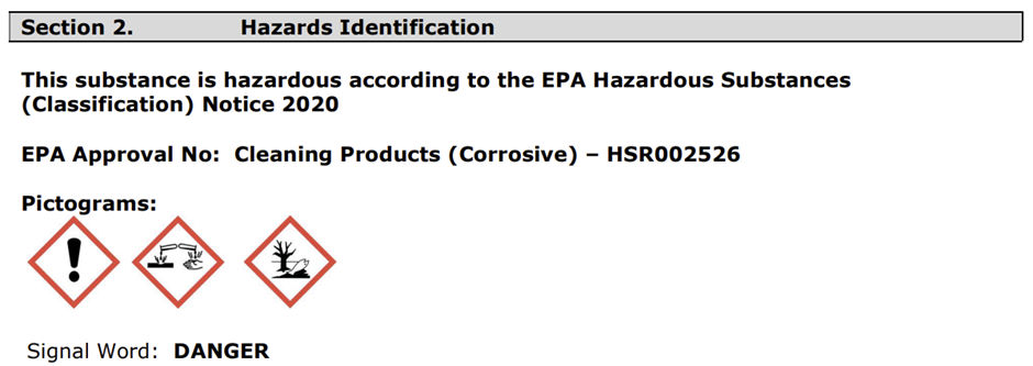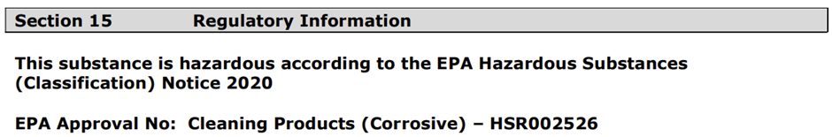 You can find the group standards for cleaning chemicals here. Check the Safety Data Sheet for the chemical you intend to apply–if it has the HSR number for one of the cleaning chemical group standards (such as HSR002526) then it is classified as a cleaning chemical.